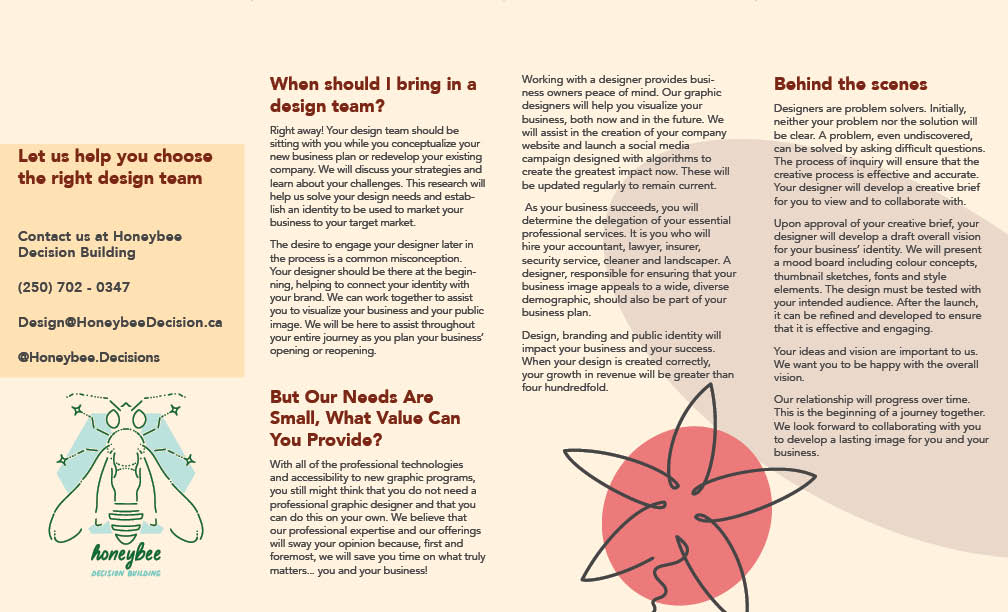 There is also contact information for Honeybee to get people in need of designers connected.