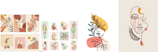 With the previously established idea of using mono-line and solid colours, I wanted to do a series of images and icons in imagery that supported the content in the bohemian style.