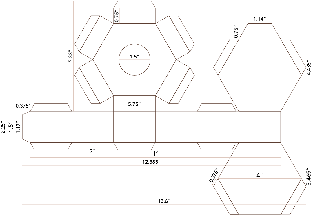 Once I got the sides of the hexagons right the rest of the dimensions fell into place. It was tricky to find out where the tabs that would be glued would go but staggering them along each side seemed ideal.
