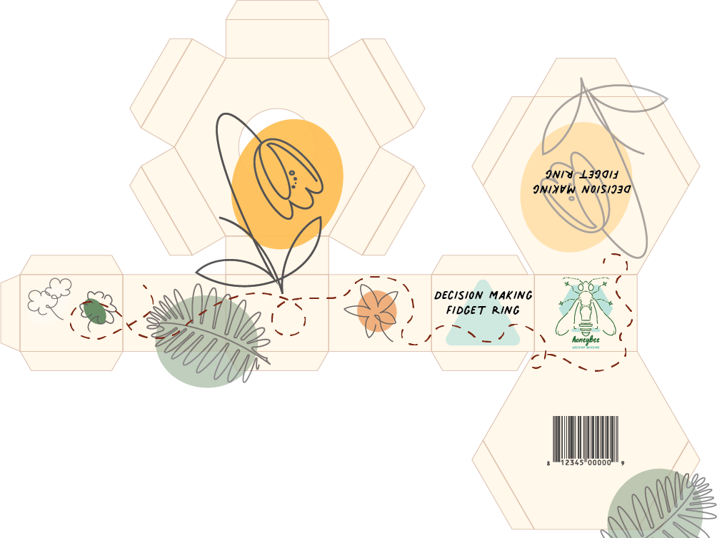 The last design component to the Honeybee project is the box for the ring. This box was a lot more complex than the cards packaging because I wanted the box to represent a honeycomb.