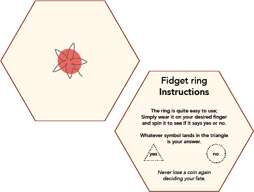 With a unique ring I wanted there to be instructions so people understand what they are meant to do with the ring. It's a whimsical tool meant to be used like a coin or a magic-8 ball. The instructions were meant to be a light-hearted way of telling you what each symbol is recommended to represent.